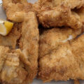 Two pieces of crispy breaded flounder with our homemade tartar...