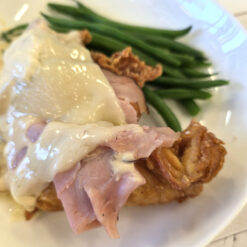 Our buttermilk fried chicken tenders get dressed up fancy with thin-sliced ham, melty Swiss, and a drizzle of light Dijon cream sauce. Served with crisp-tender green beans for balance. Low carb, high protein, and a little too good to pass up.