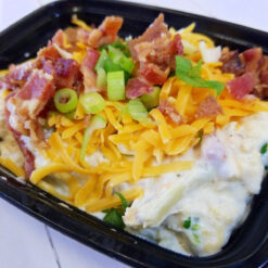 Loaded cauliflower is a tasty veggie delight – low carb, full of flavor. With a homemade cream sauce, bacon, shredded cheddar, and a touch of green onions, it’s downright loaded! Enjoy as a side or hearty vegetarian dish.