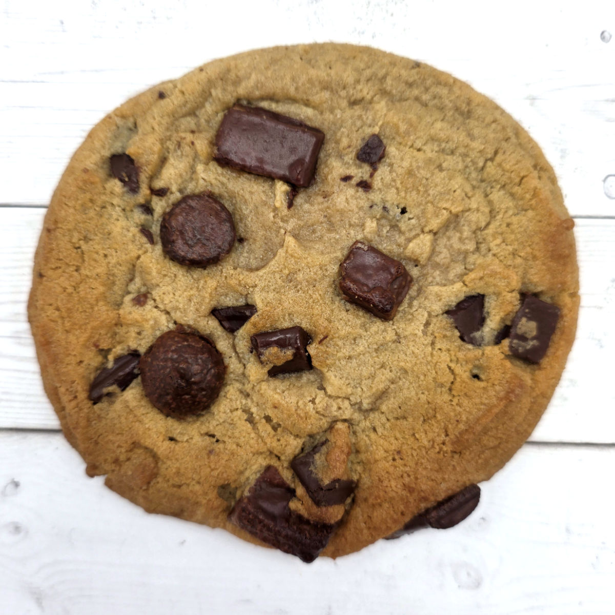 This cookie is good for solving problems that don’t exist, like not enough chocolate. Rich, chewy, and stacked with milk, semi-sweet, and Hershey’s chocolate chunks.
