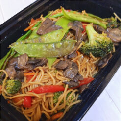 Veggies stir-fried with noodles, sesame, ginger, and soy. Add your own protein or savor the vegetarian delight. Let’s dig in!